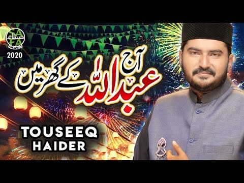 Ajj Abdullah Ke Ghar Mein with Lyrics and Video in Urdu got fame with voice of famous Touseeq Haider. Ajj Abdullah Ke Ghar Mein-اج عبداللہ کے گھرnaat in Urdu can be listened, download, read and share to others. Lyrics of Ajj Abdullah Ke Ghar Mein are also available on naat videos.com and many other naats with lyrics are also available here. In this naat Touseeq Haider tribute to The The Holy prophet muhammad (P.B.U.H) for the forgiveness of their sins and wish reward in shape of blessing. This naat is recorded in studio with soft melodious voice of Touseeq Haider.