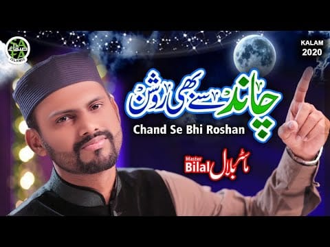 Chand Se Bhi Roshan with Lyrics and Video in Urdu got fame with voice of famous Master Bilal. Chand Se Bhi Roshan-چاند سے بھی روشنnaat in Urdu can be listened, download, read and share to others. Lyrics of Chand Se Bhi Roshan are also available on naat videos.com and many other naats with lyrics are also available here. In this naat Master Bilal tribute to The The Holy prophet muhammad (P.B.U.H) for the forgiveness of their sins and wish reward in shape of blessing. This naat is recorded in studio with soft melodious voice of Master Bilal.