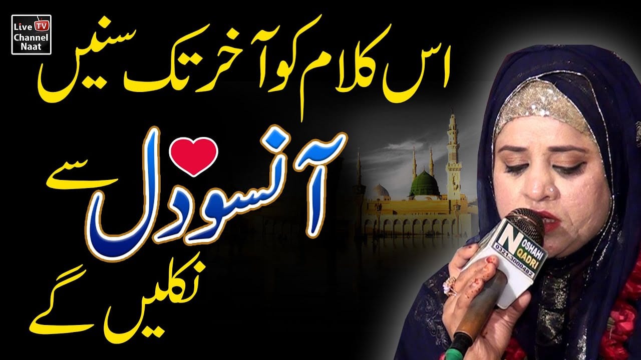 Madina Yaad Ata Hay with Lyrics and Video in Urdu got fame with voice of famous Ana Sakina. Madina Yaad Ata Hay-مدینہ یاد آتا ہے kalam in Urdu can be listened, downloaded, read and shared to others. Lyrics of Madina Yaad Ata Hay are also available on naatvideos.com and many other naats with lyrics are also available here. In this kalam Ana Sakina tribute to The Madina Yaad Ata Hayfor the forgiveness of their sins and wish reward in shape of blessing. This kalam is recorded Live channal new naat live mehfil with soft melodious voice of Ana Sakina.