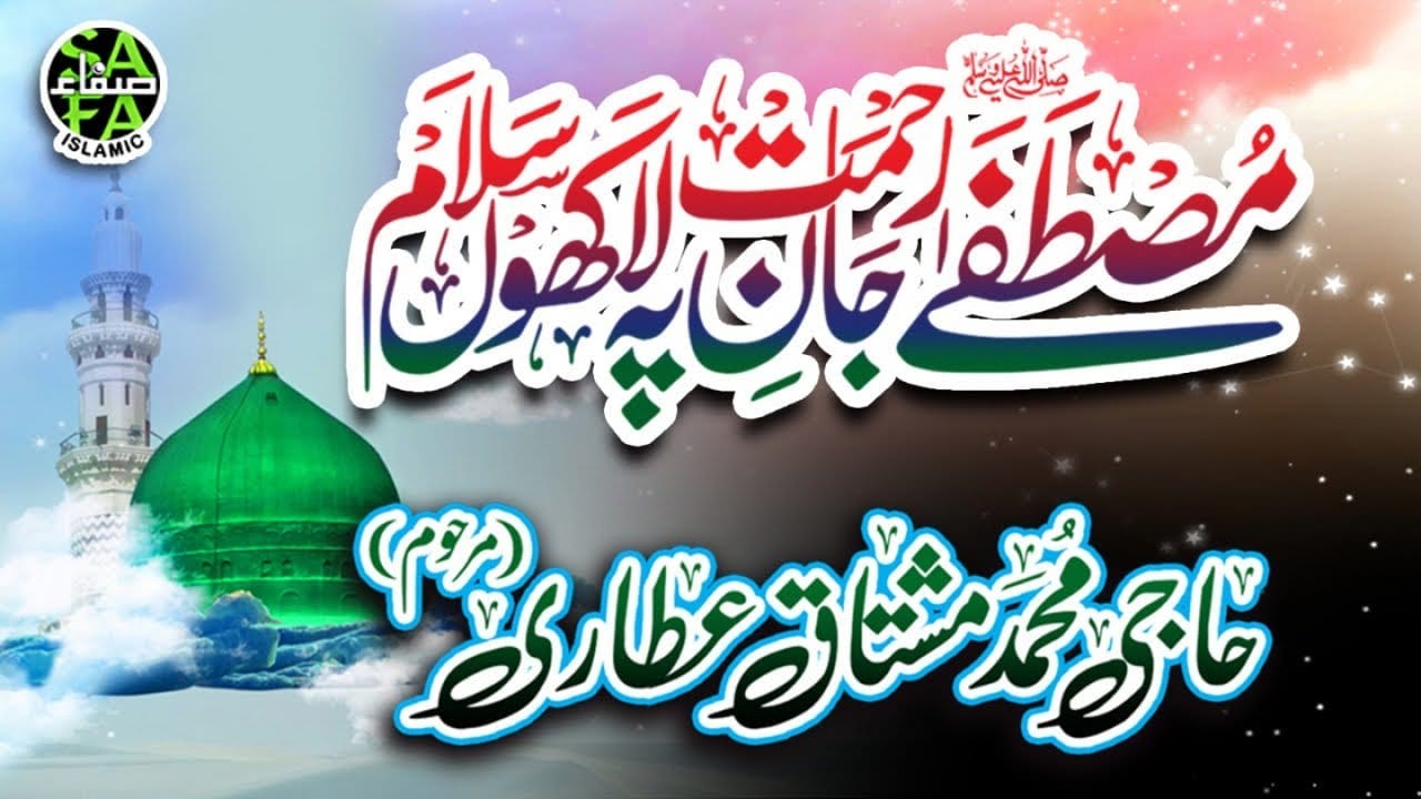 Mustafa Jaane Rehmat Pe Lakhon Salam with Lyrics and Video in Urdu  got  fame with voice of famous Haji Muhammad Mushtaq Attari. Mustafa Jaane Rehmat Pe Lakhon Salam-مصطفی جان رحمت پہ لاکھوں سلامsalaam in Urdu can be listened, download, read and share to others. Lyrics of Mustafa Jaane Rehmat Pe Lakhon Salam are also available on naat videos.com and many other naats with lyrics are also available here. In this salaam  Haji Muhammad Mushtaq Attari tribute to The The Holy prophet muhammad (P.B.U.H) for  the forgiveness of their sins and wish reward in shape of blessing. This salaam is recorded in studio with soft melodious voice of Haji Muhammad Mushtaq Attari.