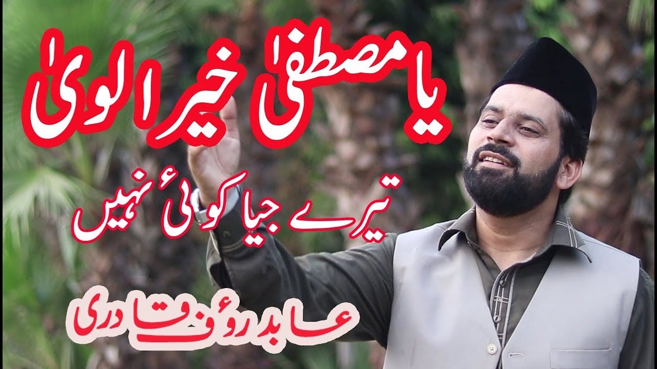 Ya Mustafa Khair Ul Wara Tere Jiya Koi nahi with Lyrics and Video in Punjabi got fame with voice of famous Abid Rauf Qadri. Ya Mustafa Khair Ul Wara Tere Jiya Koi nahi-یا مصطفٰیﷺ خیر الوریٰ تیرے جیا کوئی نہیں Naat in Punjabi can be listened, downloaded, read and shared to others. Lyrics of Ya Mustafa Khair Ul Wara Tere Jiya Koi nahi are also available on naatvideos.com and many other naats with lyrics are also available here. In this Naat Abid Rauf Qadri tribute to The Ya Mustafa Khair Ul Wara Tere Jiya Koi nahifor the forgiveness of their sins and wish reward in shape of blessing. This Naat is recorded recoding in Abid Rouf Qadri In stuido with soft melodious voice of Abid Rauf Qadri.